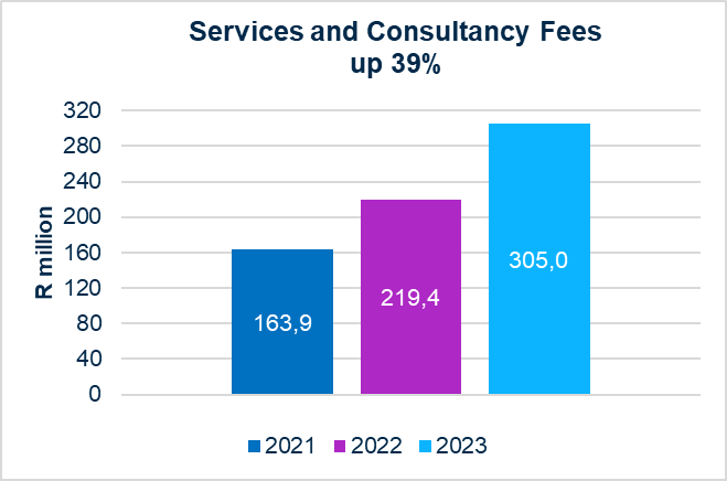 Services and consultancy fees accelerated by 39% due to the increased demand for cloud and digital projects, and Security hardware and third-party licence fees which increased significantly.